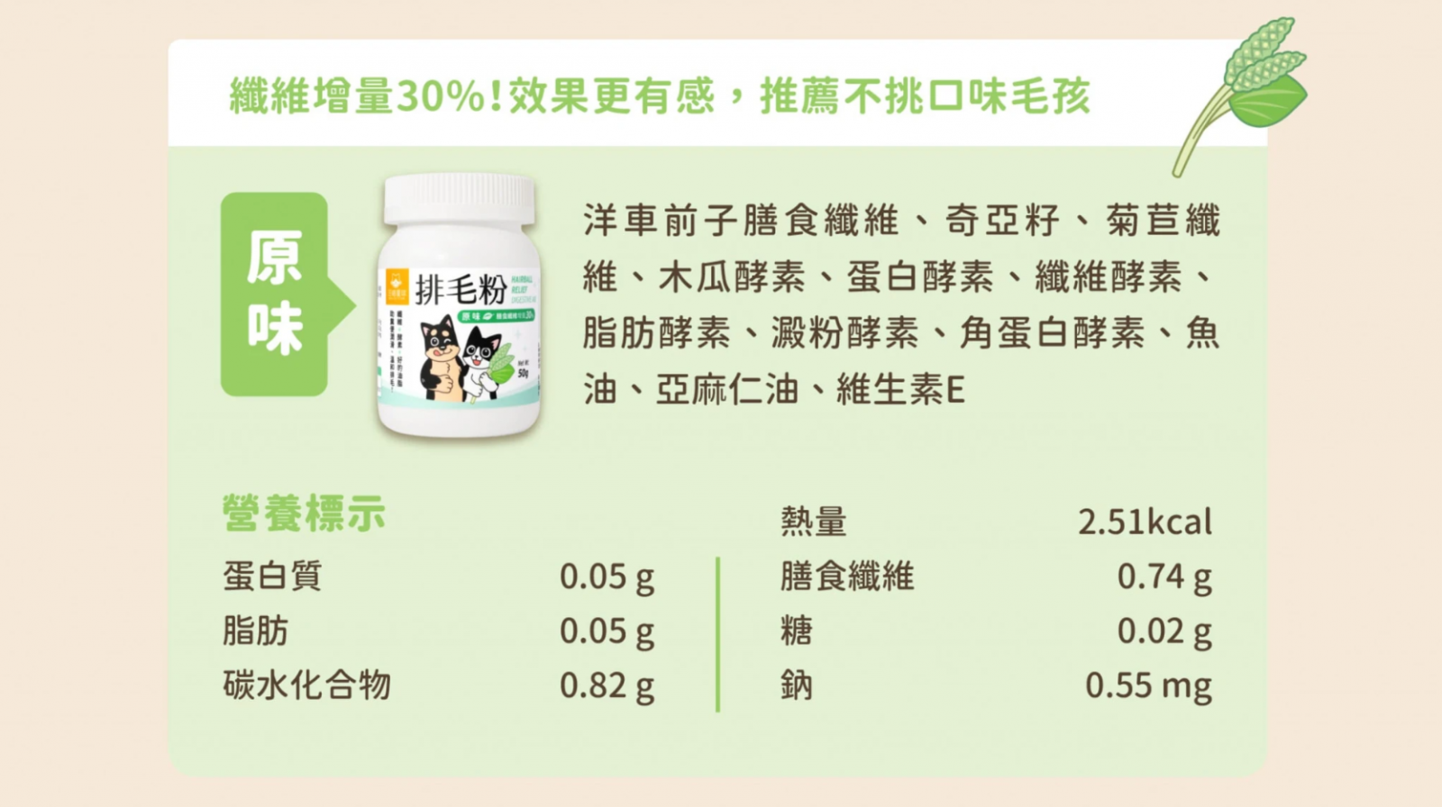 首頁 > > 汪喵星球 排毛粉|寵物天然排毛粉50g